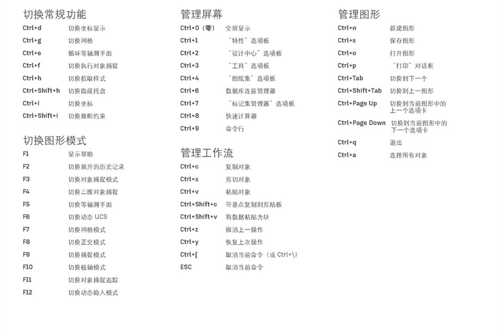 Auto CAD 常用快捷键